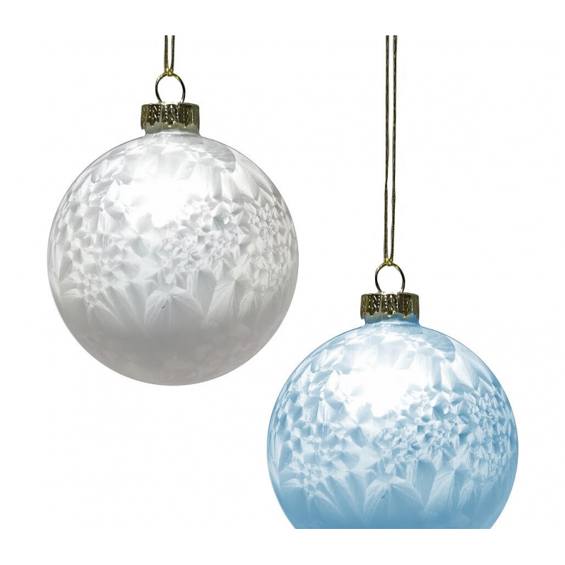 Качественное стекло; Элегантный бело-голубой дизайн; Легкий вес 15 г; Подходит для многократного использования; Универсальное украшение для елки и интерьера