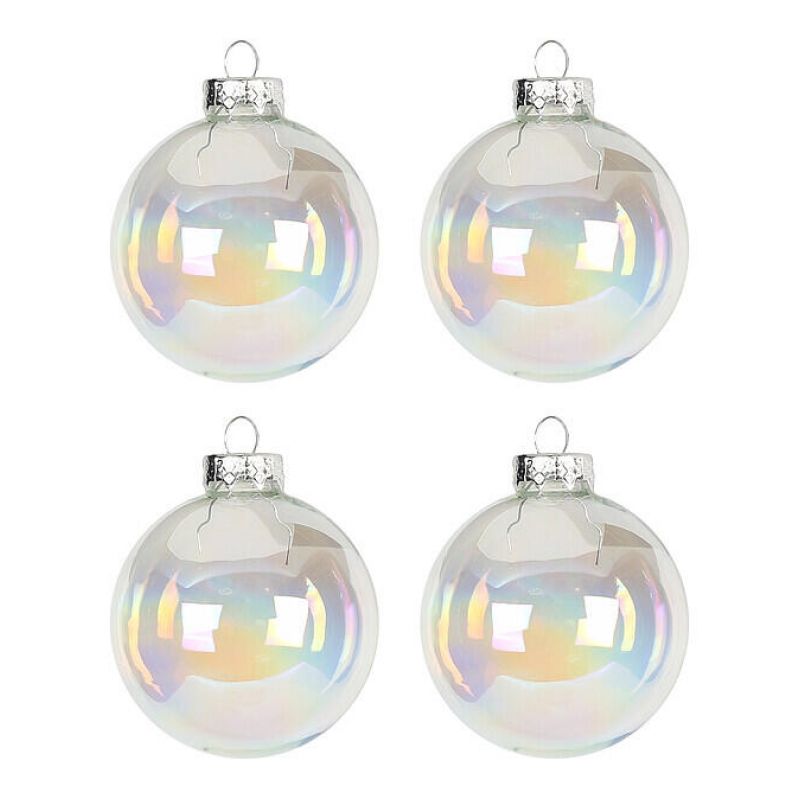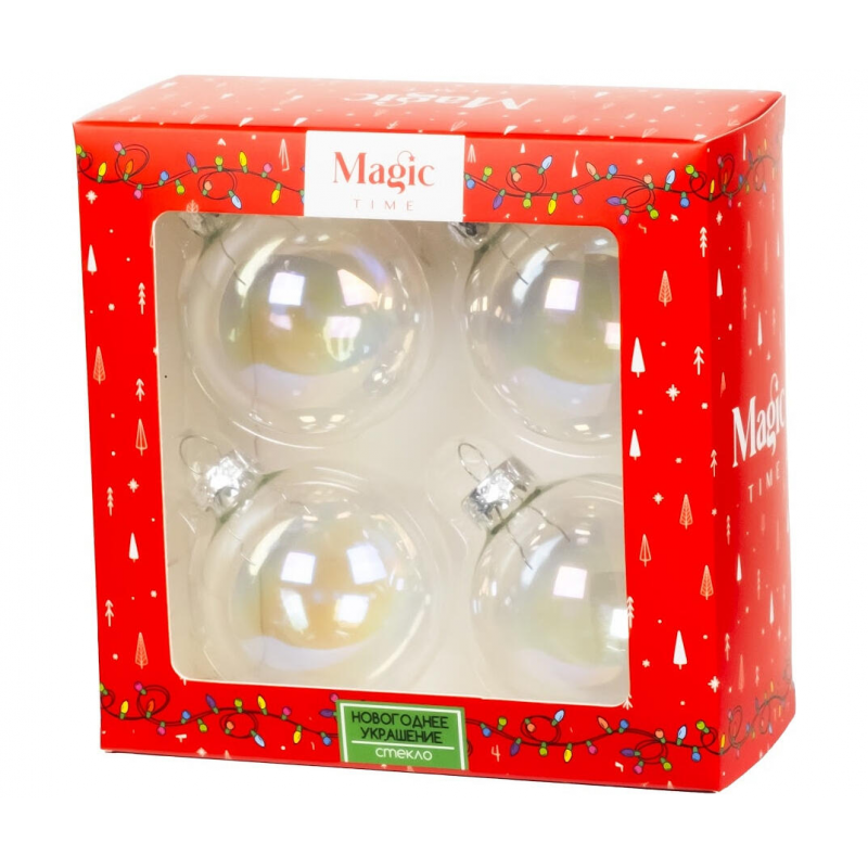 Элегантный перламутровый эффект; Качественное стеклянное исполнение; Удобный набор из 4 шаров; Идеальный размер для декора; Легкий вес для простого хранения