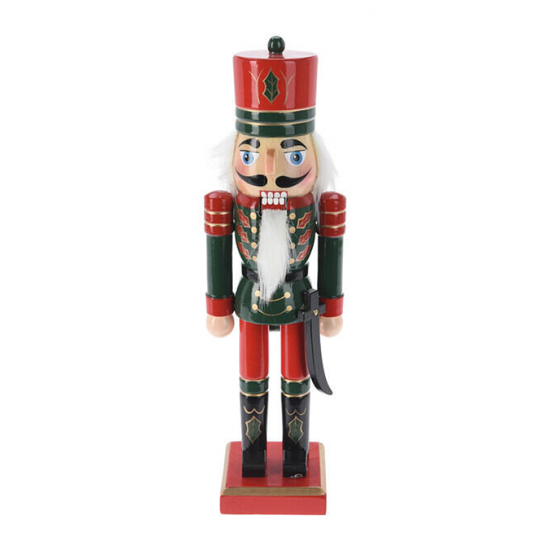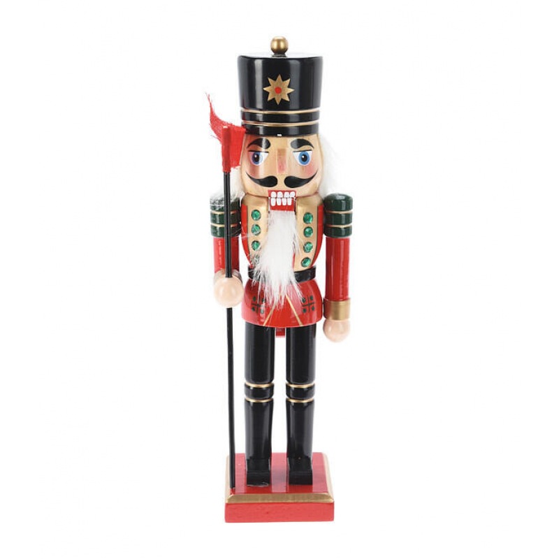 Разместите фигуру Щелкунчика на каминной полке, праздничном столе или комоде для создания волшебной новогодней атмосферы. Идеально сочетается с гирляндами, елочными шарами и другими рождественскими украшениями в красной гамме. Можно использовать как самостоятельный декоративный элемент или в композиции с другими новогодними фигурками. Рекомендуется беречь от прямых солнечных лучей и повышенной влажности для сохранения первоначального вида. Перед первым использованием протрите фигуру сухой мягкой тканью.