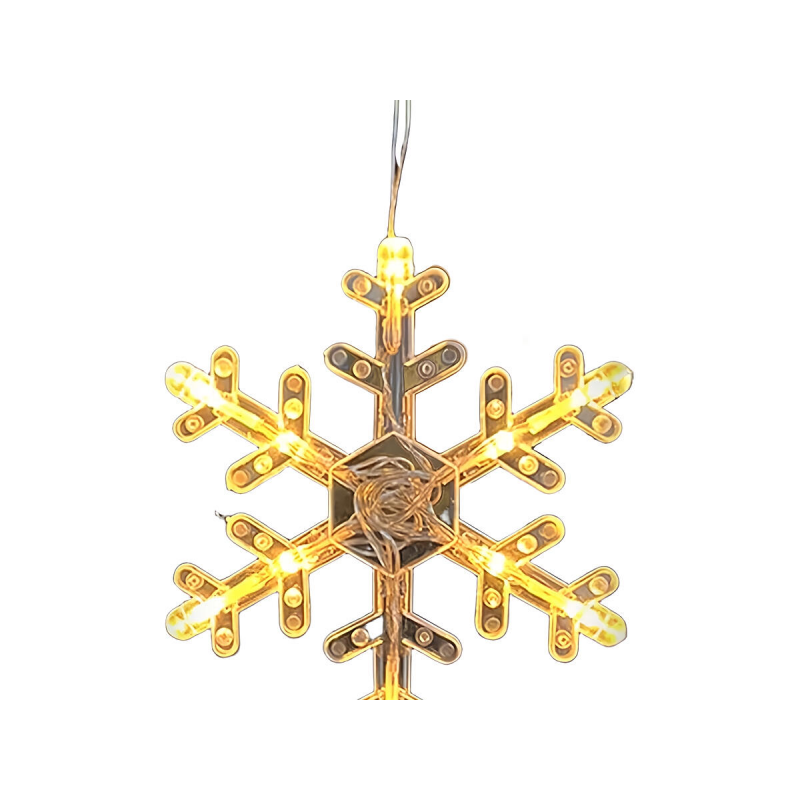 Стильный дизайн снежинки; Яркая LED-подсветка; Удобное крепление на присоске; Работа от батареек; Легкий и компактный; Универсальное применение
