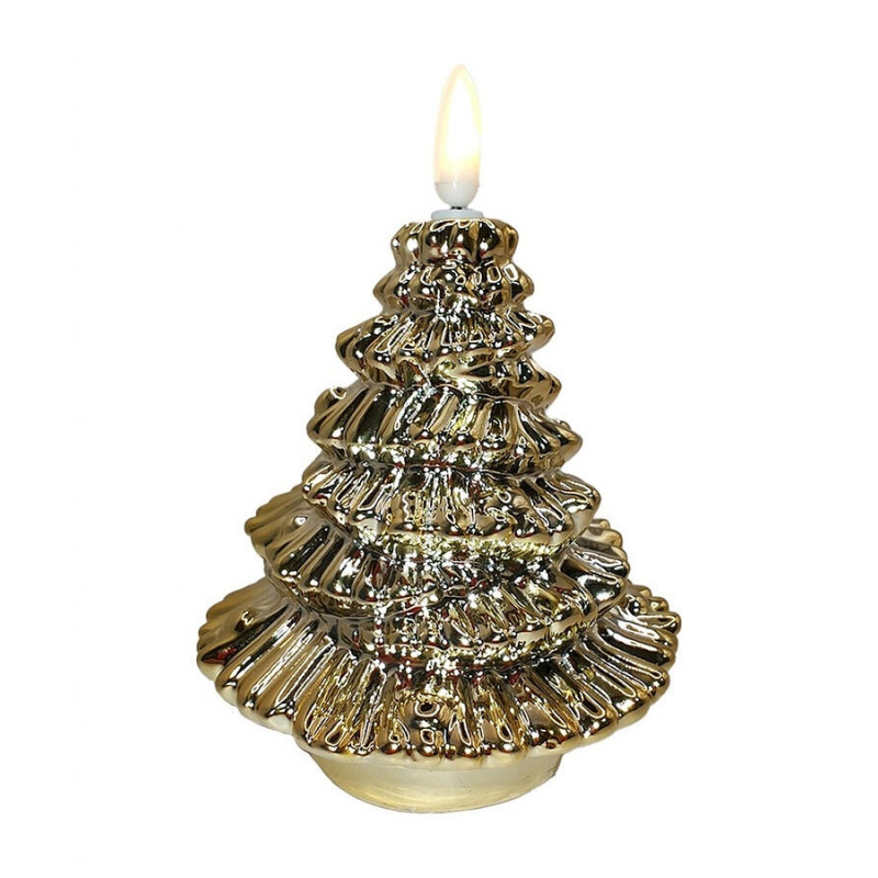 Элегантный дизайн в виде елки; Качественный фарфор с золотым покрытием; Встроенная LED-подсветка для создания атмосферы; Компактные размеры 9,5×13 см; Автономная работа от батареек; Универсальное праздничное украшение