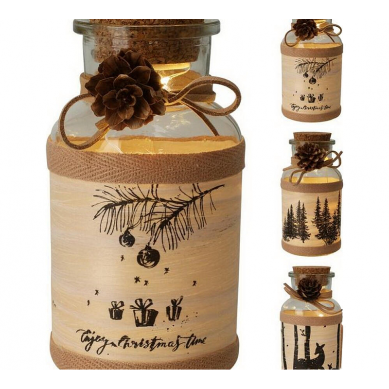 Новогодняя LED-композиция в виде изящной стеклянной банки бежевого цвета высотой 14 см. Элемент декора работает от батареек, что обеспечивает мобильность размещения без необходимости подключения к розетке. Идеальное решение для создания праздничной атмосферы в интерьере. Мягкое свечение LED-подсветки создает уютную и теплую обстановку, подходящую для новогодних праздников и романтических вечеров. Компактные размеры позволяют разместить композицию на полках, столах, подоконниках или использовать как элемент праздничного стола. Качественное исполнение и стильный дизайн делают этот декор универсальным украшением для любого помещения.