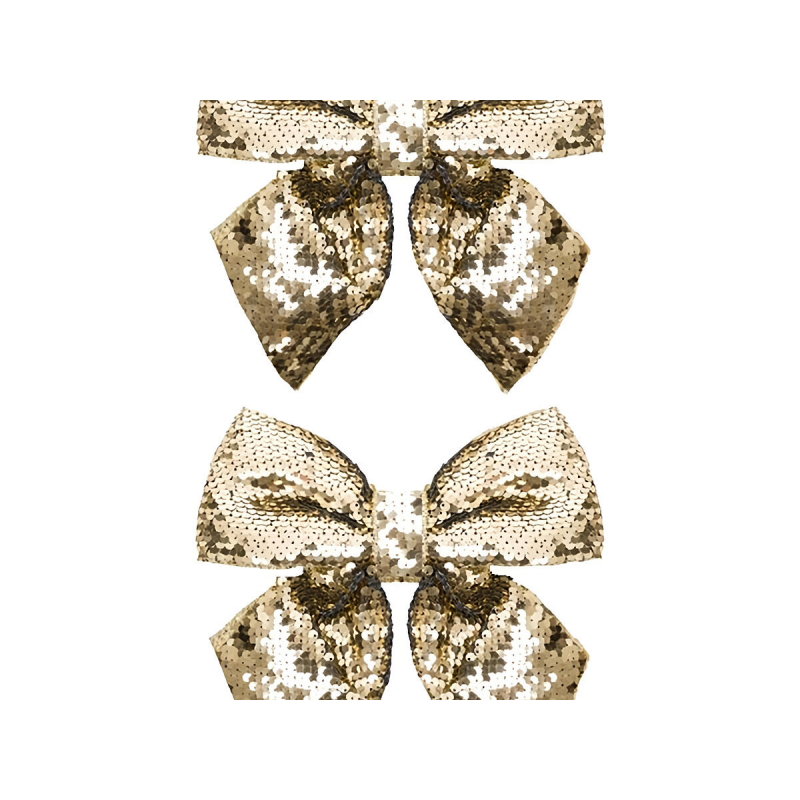 Элегантный золотой цвет; Качественный полиэстер; Заметный размер 14х12 см; Набор из 2 украшений; Удобная упаковка; Создает праздничную атмосферу