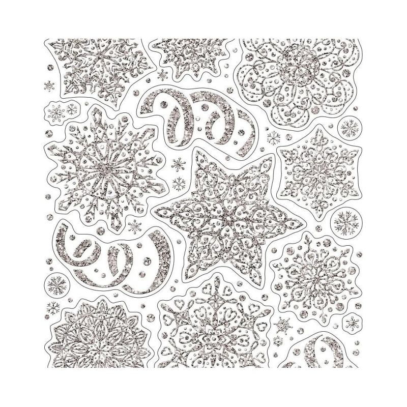 Легко наносится и снимается без следов; Не требует клея - держится за счет статического эффекта; Подходит для многократного использования; Качественный ПВХ-материал серебристого цвета; Универсальный размер 30×38 см для различных поверхностей; Создает праздничную атмосферу