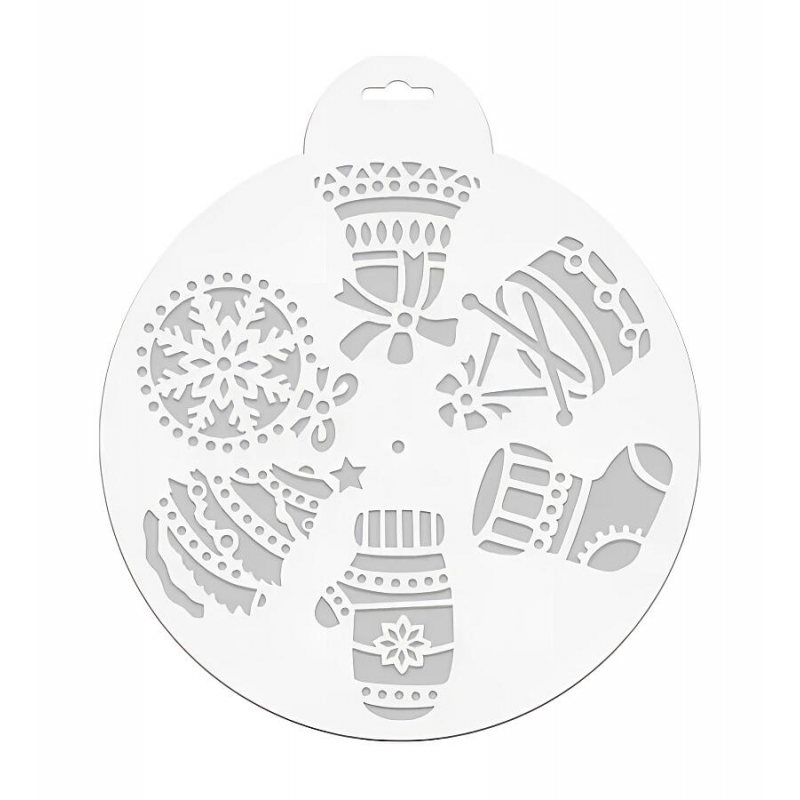Четкий контур для аккуратного нанесения; Прочный пластик для многократного использования; Универсальный размер 25х25 см; Легкий вес 0.03 кг; Подходит для различных поверхностей; Идеален для новогоднего декора