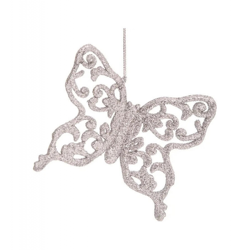 Изысканное елочное украшение в форме бабочки от бренда MAGIC TIME станет ярким акцентом в новогоднем декоре. Изделие выполнено из качественного пластика с элегантным серебряным покрытием, которое эффектно переливается в свете гирлянд. Размеры украшения 9,5×8,5 см делают его заметным элементом на елке любого размера. Бабочка отличается прочностью и долговечностью, сохраняя свой первоначальный вид на протяжении многих лет. Это украшение прекрасно сочетается с другими декоративными элементами и подходит для создания гармоничной праздничной композиции. Легкий вес (всего 14 грамм) позволяет размещать его даже на тонких ветках без риска повреждения.