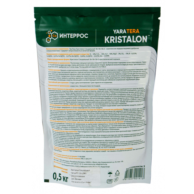 Комплексное водорастворимое удобрение (NPK 18-18-18+micro) для корневой и листовой подкормки всех сельскохозяйственных культур и любых технологий выращивания. Содержит весь набор макро- и микроэлементов. Благодаря содержанию азота в амидной форме, идеально подходит для некорневой подкормки. Повышает урожай, а также его качество (белок, клейковина, сахара и жиры). Повышает устойчивость растений к засухе и низким температурам, устойчивость к болезнями. Содержит микроэлементы в хелатной форме. Удобрение совместимо с большинством пестицидов при подготовке баковых смесей. Примечание: 5 г ― 1 чайная ложка, 20 г ― 1 столовая ложка.