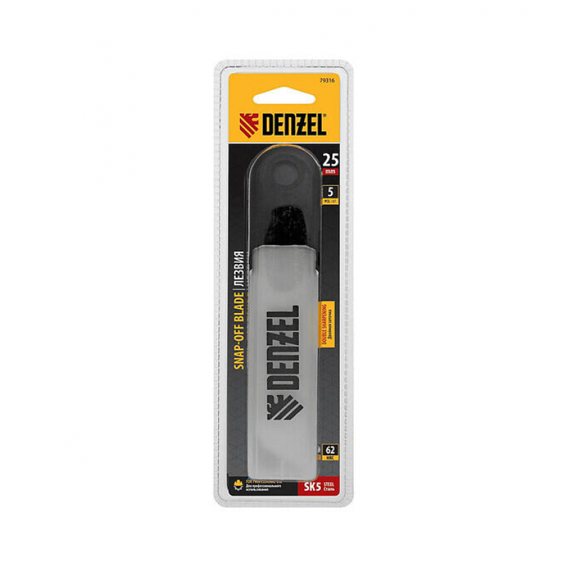 Сегментированные лезвия DENZEL шириной 25 мм для универсального использования. В упаковке 5 штук. Общая длина лезвия 126 мм. Продукция немецкого бренда, обеспечивающая высокое качество и точность резки.