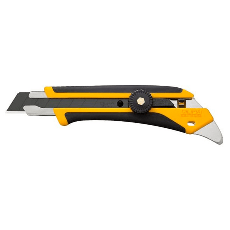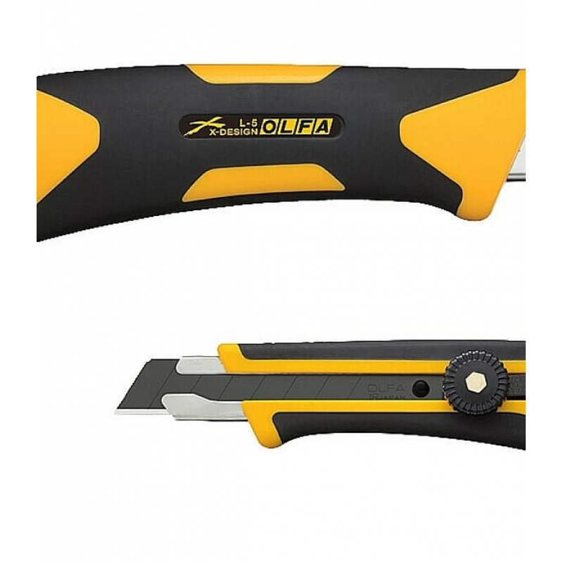 Универсальный выдвижной нож OLFA L-5 с сегментированным лезвием шириной 18 мм. Оснащен трещоточным храповым механизмом для легкого управления и металлическим выступом. Эргономичная двухкомпонентная рукоятка с противоскользящим покрытием устойчива к кислотам, маслам и ацетону, усилена фиберглассом. Комплектуется острым лезвием LBB на 8 сегментов. Произведен в Японии.