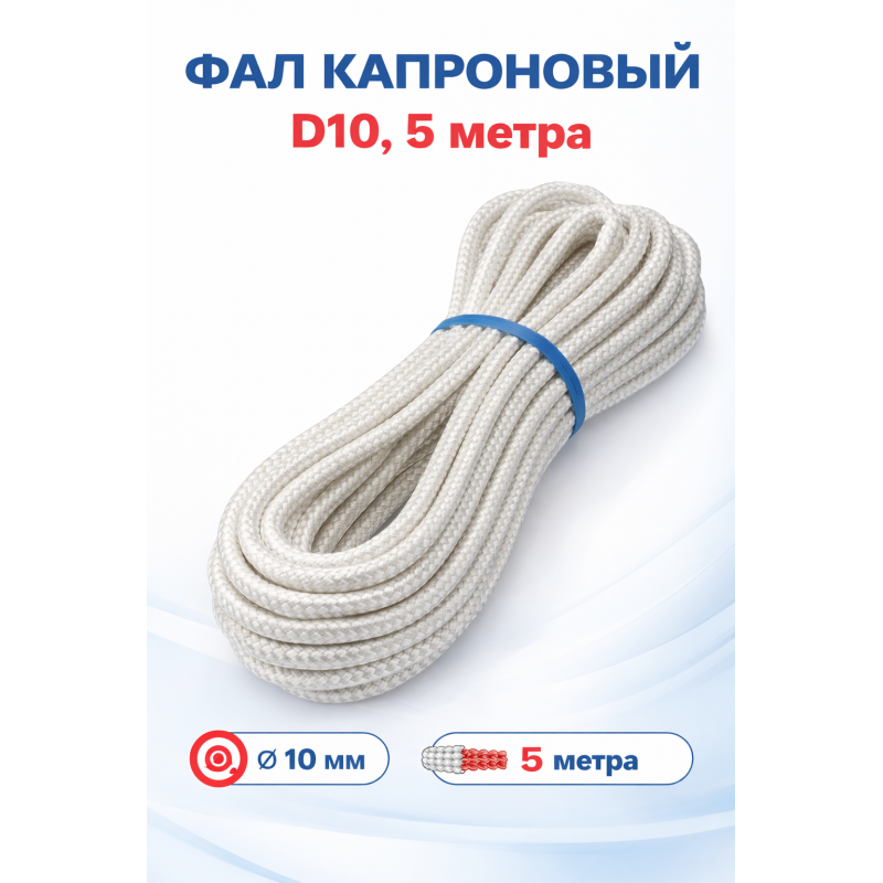 Капроновый фал диаметром 10 мм. Произведен в Беларуси из высококачественного синтетического материала. Продается метражом. Вес одного метра составляет всего 60 грамм.
