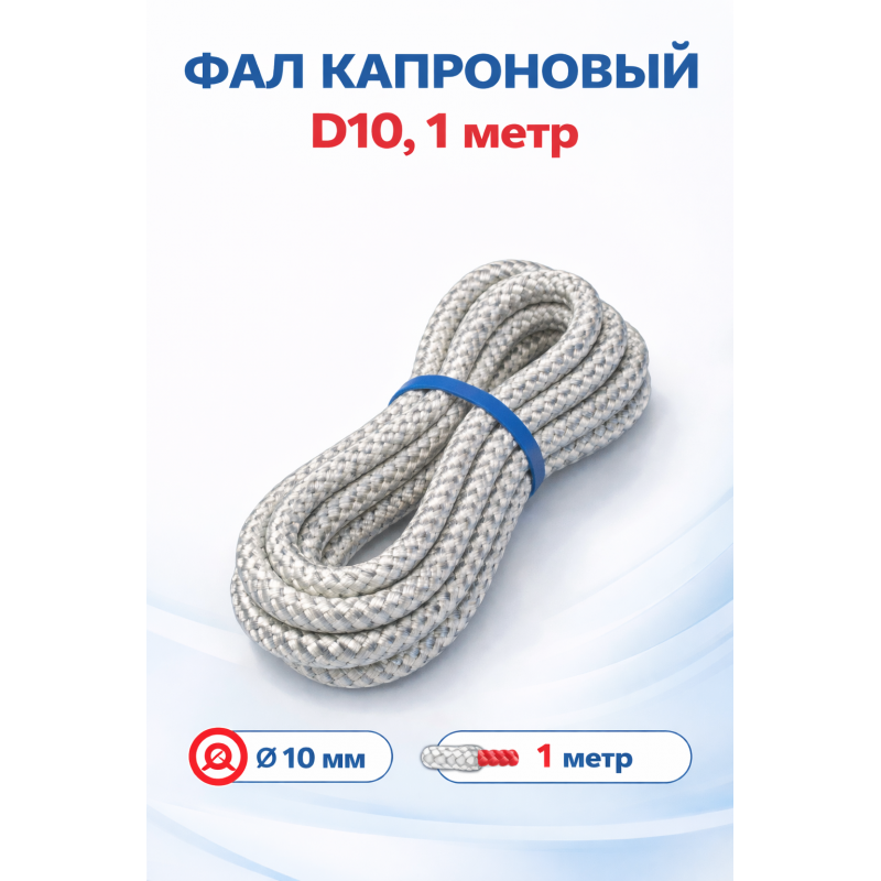 Капроновый фал диаметром 10 мм. Произведен в Беларуси из высококачественного синтетического материала. Продается метражом. Вес одного метра составляет всего 60 грамм.