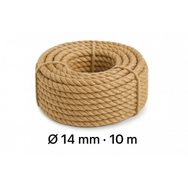 Джутовый канат Канатбай диаметром 14 мм. Натуральный и прочный шпагат из экологичного материала. Продается метрами (м.п.), вес 100 грамм на метр. Произведено в Беларуси.
