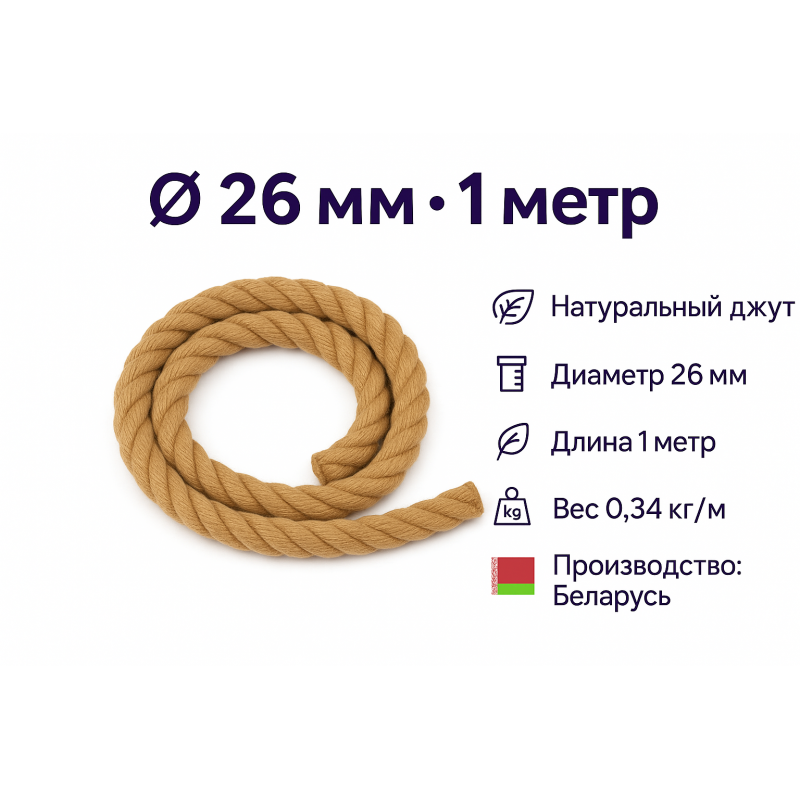 Джутовый канат D24 от бренда Канатбай. Натуральный канат диаметром 24 мм. Произведен в Беларуси. Продается погонными метрами. Вес одного метра: 0.27 кг.