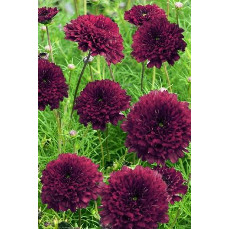 Махровые цветки роскошного бордового цвета! Декоративное растение с ажурными сильнорассеченными листьями, высотой около 80 см. Соцветия – махровые корзинки диаметром 7-10 см на крепких стеблях. Великолепно выглядят на клумбах и в бордюрах, особенно большими массивами. Прекрасный материал для срезки.