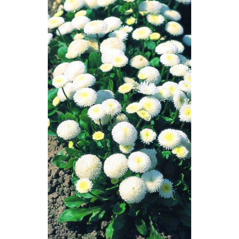 Популярные миниатюрные маргаритки высотой около 15 см. Многочисленные соцветия диаметром до 2,5 см. Окраска белая. Цветёт в апреле-июне. Универсальное использование: как почвопокровное растение, для обрамления клумб, балконных ящиков, альпинариев.
