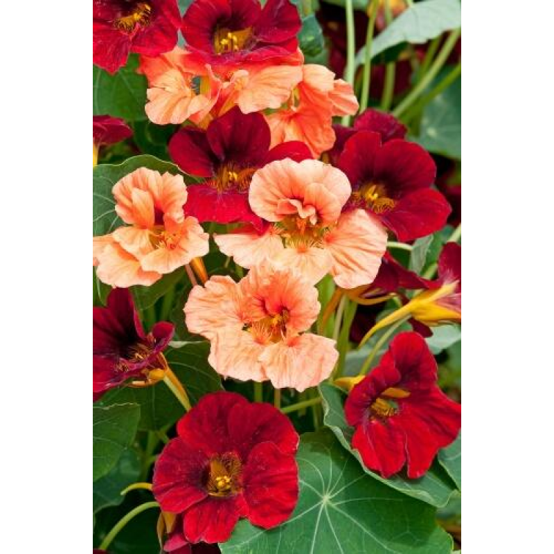 - Сорт семян:настурция низкорослая, кустовая, микс окрасок, бордовая + лососево-розовая