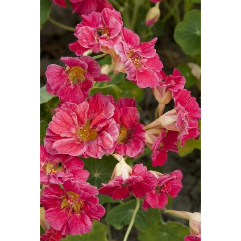 Изысканные ажурные цветки! Растение компактное, шарообразное высотой до 30 см. Цветы крупные махровые и полумахровые, вишнёво-розовые, возвышающиеся над ярко-зелёной округлой листвой. Цветёт обильно с июля по октябрь. Прекрасно подходит для контейнерной культуры, балконных ящиков, великолепно смотрится на фоне газона и в групповых посадках.
