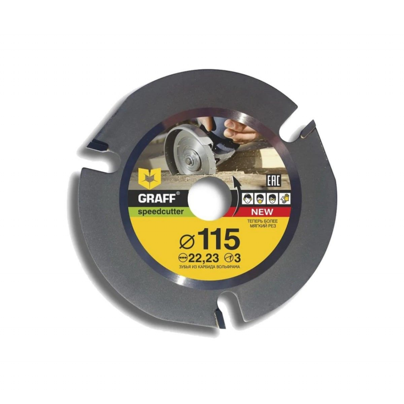 Диск пильный Speedcutter GRAFF предназначен для использования совместно с угловыми шлифовальными машинами и применяется для ровного и чистого реза древесины, фанеры, ламината, паркетных досок, гипсокартона, ДВП, ДСП, а также выборки пазов в газосиликате. Оснащен тремя зубьями из карбида вольфрама и имеет специальную конструкцию, которая обеспечивает безопасность применения с высокооборотистыми УШМ. При продолжительной работе корпус диска не нагревается.