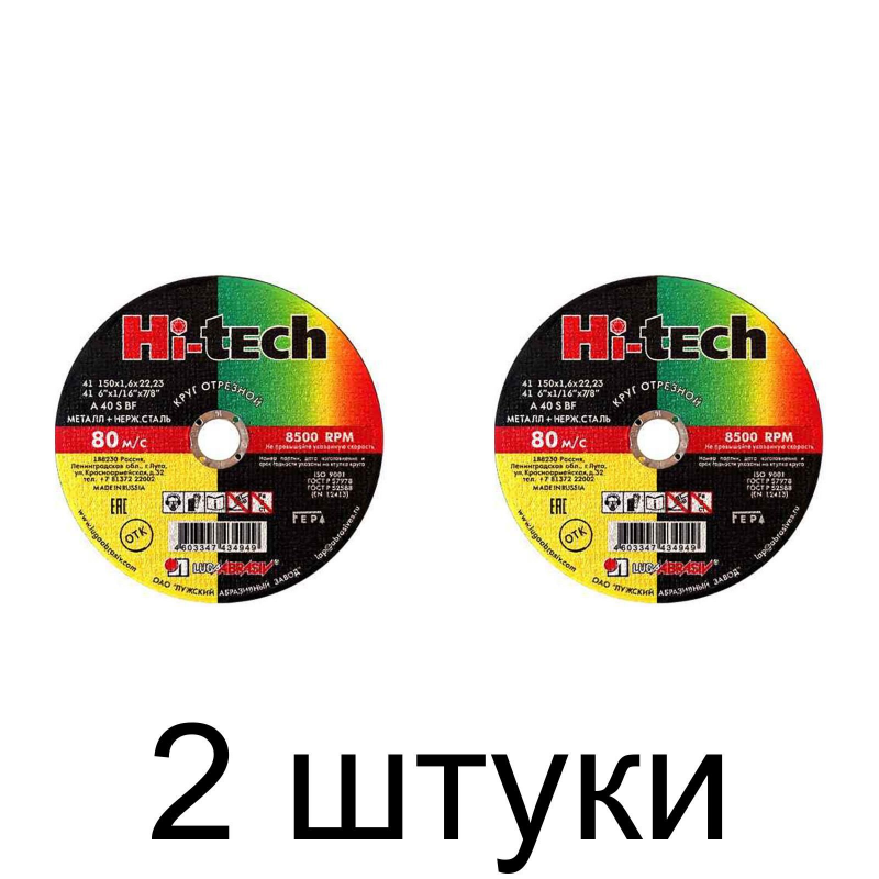 Диск отрезной ЛУГА Hi-tech 150х1,6 мм – это оптимальный выбор для профессионалов, которым важны прочность, точность и долговечность при работе с металлом.