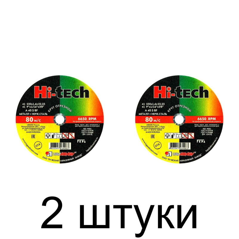 Диск отрезной ЛУГА Hi-tech 230х1,6 мм – это оптимальный выбор для профессионалов, ценящих прочность, точность и долговечность при работе с металлическими заготовками.