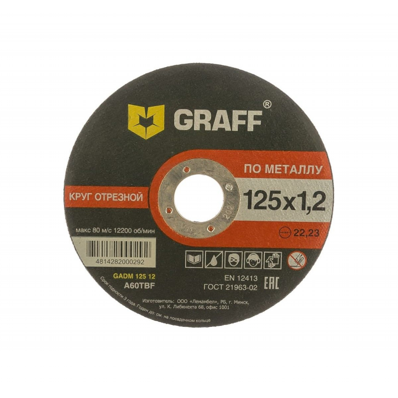 Круг GRAFF GADM 125 12 предназначен для угловых шлифовальных машин и ручных резчиков. Применяется для реза по металлу. Круг имеет двойную сетку из стекловолокна и мощное центральное кольцо, исключающее срыв оснастки с инструмента.
