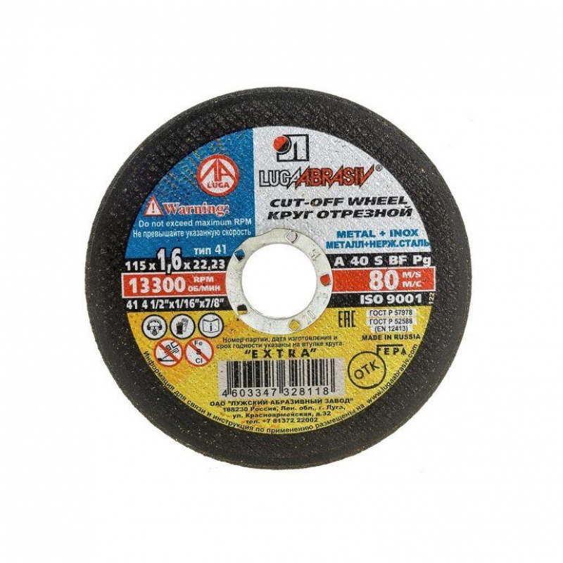 Диск отрезной 115х22х1,6 мм, А40 Луга D11001152216000 отлично подходит для резки деталей и изделий из нержавеющей стали.