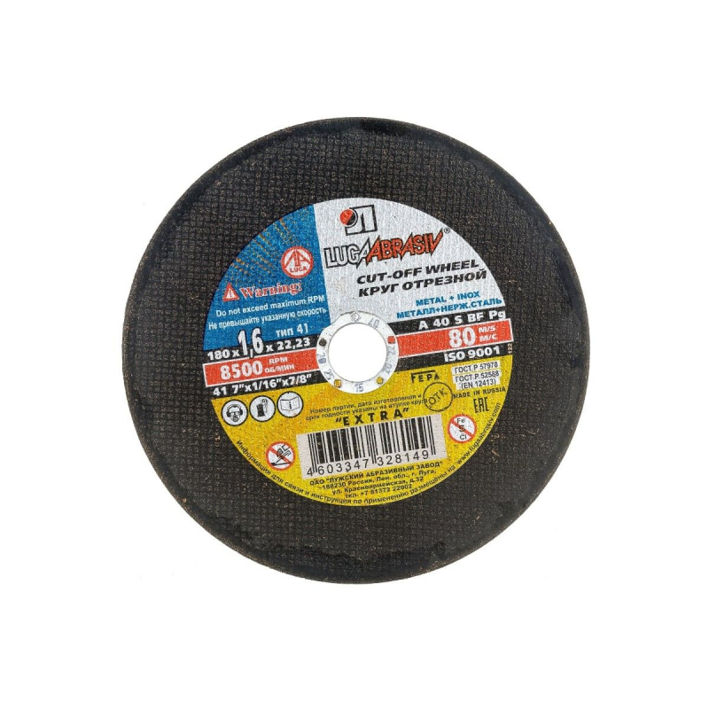 Диск отрезной по нержавеющей стали A40 S BF (180х1.6х22.2 мм) Луга D11001802216000 идеально подходит для резки деталей и изделий из нержавеющей стали. Зернистость-А40.