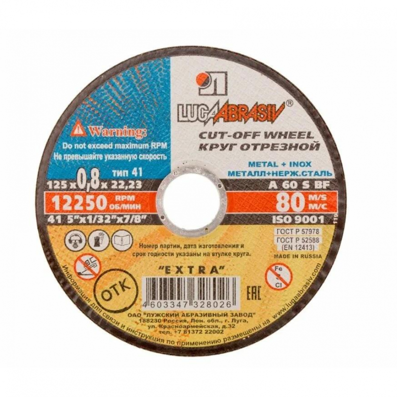 Диск отрезной ЛУГА 125*0,8 мм – это выбор для тех, кто стремится к высокой точности, качеству и надежности в работе с металлом.