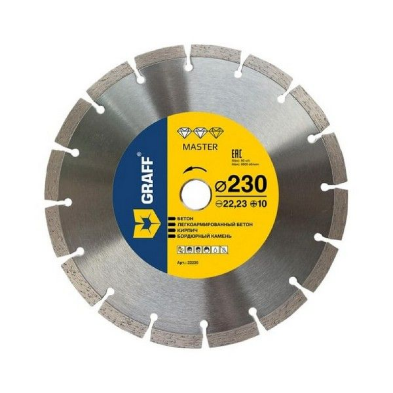 Диск алмазный GRAFF Master сегментный 230мм — это высококачественный инструмент, разработанный для эффективной и точной резки различных строительных материалов. Сегментная конструкция диска и увеличенная кромка обеспечивают отличную производительность и долговечность при эксплуатации, делая его идеальным выбором как для профессионалов, так и для домашних мастеров. Основные характеристики и преимущества Диаметр диска: 230 мм обеспечивает широкий охват поверхности, что значительно повышает скорость выполнения работ. Посадочный диаметр: 22.2 мм подходит для большинства стандартных инструментов, обеспечивая надежную фиксацию диска. Тип диска: Сегментный дизайн улучшает эффективность резки и снижает нагрузку на инструмент. Высота алмазного слоя: 10 мм гарантирует высокую износостойкость и длительный срок службы диска даже при интенсивной эксплуатации. Толщина диска: 2.6 мм обеспечивает тонкую и точную резку, снижая вероятность перегрева и повышая качество обработки. Тип реза: Возможность мокрого и сухого реза делает диск универсальным инструментом для различных условий работы. Обрабатываемые материалы: Идеально подходит для резки бетона, кирпича и камня, что делает его незаменимым на строительных площадках и в ремонте. Вес: 0.2 кг обеспечивает баланс между прочностью и удобством использования, снижая нагрузку на оборудование при длительной работе. Производитель: Graff, известная своим качеством и надежностью. Страна производства: Китай, что гарантирует доступную цену без потери качества. Преимущества диска GRAFF Master сегментный 230мм: Высокая износостойкость: Толстый алмазный слой обеспечивает длительный срок службы диска, сокращая затраты на его замену. Эффективность резки: Большой диаметр и сегментная конструкция позволяют выполнять резку быстро и точно, повышая производительность труда. Универсальность: Возможность использования как для мокрого, так и для сухого реза расширяет спектр применения диска в различных условиях. Надежность: Продукция бренда GRAFF славится своим качеством и долговечностью, что подтверждено отзывами профессионалов. Легкость использования: Оптимальный вес диска способствует комфортной работе и снижает усталость оператора при длительном использовании. Применение Диск алмазный GRAFF Master сегментный 230мм идеально подходит для: Резки бетонных плит и конструкций Обработки кирпича и каменных блоков Выполнения точных и чистых резов в сложных условиях Подготовки поверхностей для укладки новых материалов Установка и эксплуатация Для установки диска на инструмент необходимо обеспечить соответствие посадочного диаметра 22.2 мм. Рекомендуется использовать диск совместно с оборудованием для мокрого или сухого реза в зависимости от требований проекта. Перед началом работы убедитесь в правильной установке диска и соблюдайте рекомендации производителя по эксплуатации. Правильная техника резки поможет предотвратить перегрев инструмента и продлить срок службы диска.