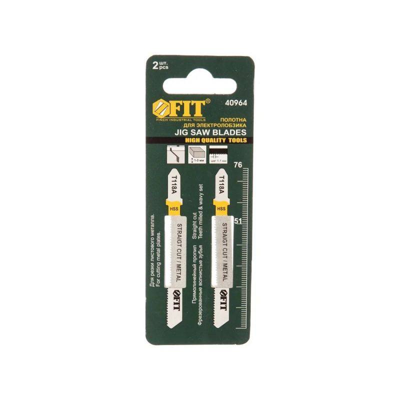 Набор пилок для лобзика FIT T118A предназначен для точной и чистой резки металлических материалов. Эти пилки выполнены из быстрорежущей стали (HSS), что обеспечивает высокую прочность и устойчивость к износу при работе с металлом. Идеально подходят для прямого реза в тонколистовых металлах.