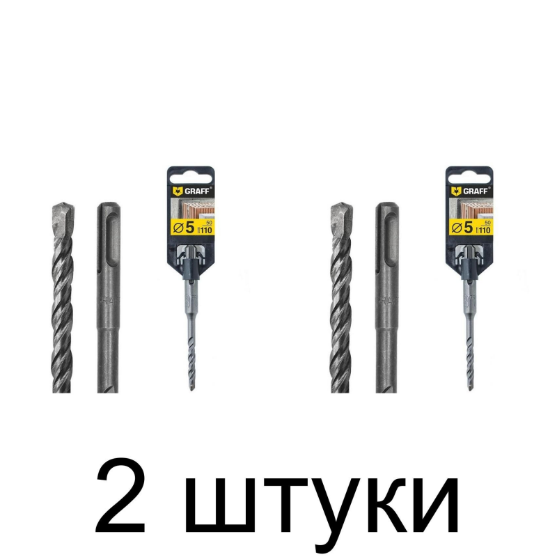 Сверло SDS+ GRAFF, 5x50x110 мм – миниатюрное сверло диаметром 5 мм, подходящее для создания точных отверстий в твердых материалах, включая бетон и кирпич. Хвостовик SDS-Plus обеспечивает плотное крепление. Вес: 0,037 кг. Производитель: Graff, Китай.