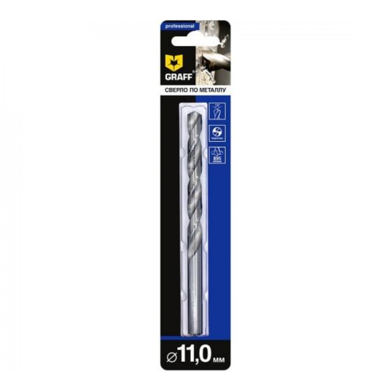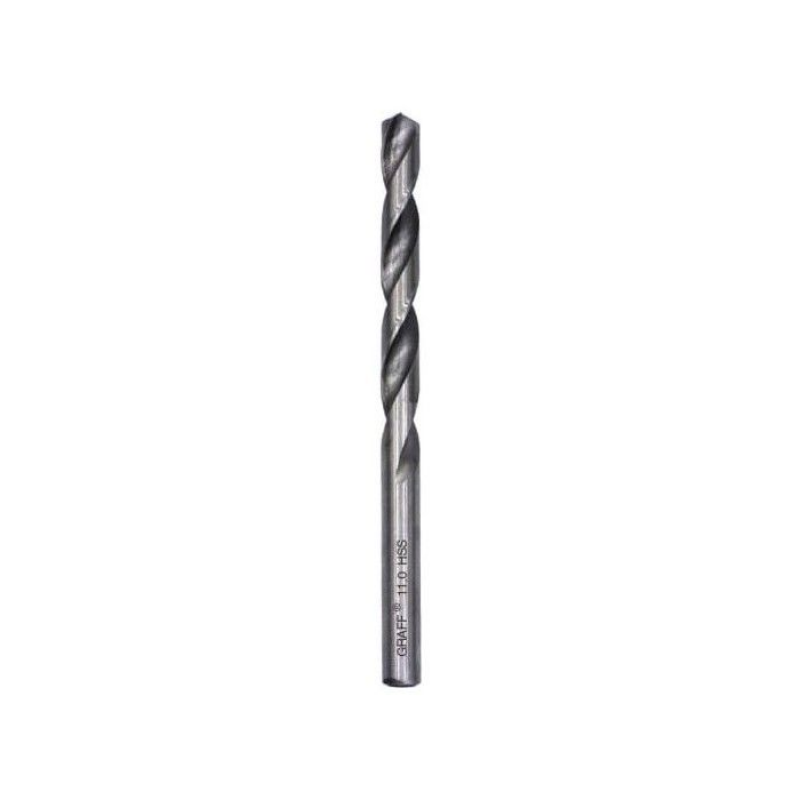Сверло по металлу спиральное GRAFF из быстрорежущей стали HSS 4341, изготовленное методом вальцевания (продольно винтовой прокат) c вышлифованной кромкой, класс точности В1. Угол при вершине 135 градусов и крестовая подточка обеспечивают отличное сверление металла без предварительного засверливания. Сверло изготовлено по ГОСТ 10902-77 (DIN 338) и предназначено для сверления отверстий в легированных и не легированных сталях, ковких и серых чугунах.
