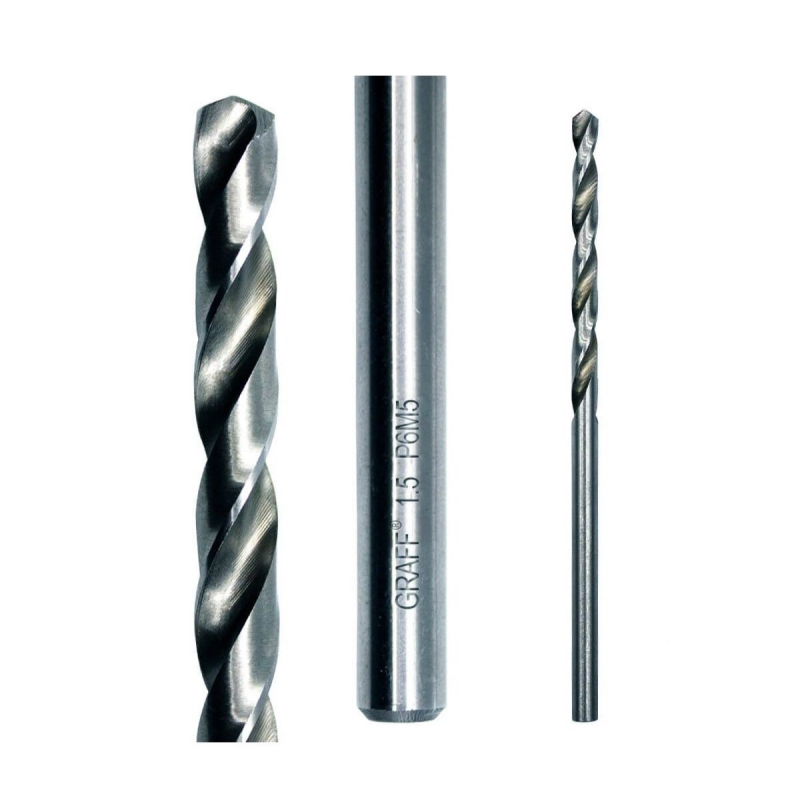 Профессиональное сверло по металлу 1,5 мм GRAFF из быстрорежущей стали Р6М5.Угол заточки режущей кромки при вершине - 135° градусов, что обеспечивает идеальный выброс стружки и, как следствие, более низкий нагрев кончика сверла. Крестообразная подточка режущих кромок при вершине позволяет начинать сверление без предварительного засверливания центровочным сверлом или кернения. Сверло средней серии изготовлено по DIN 338, ГОСТ 10902-77, одинаково хорошо подходит для работы как на промышленных предприятиях, так и в небольших мастерских и подсобных хозяйствах.Рекомендация по числу оборотов для сверла диаметром 1,5 мм - 4780 об/мин. Обращаем ваше внимание, что скорость сверления указана для нелегированной стали. При обработке других видов металла число оборотов будет отличаться.