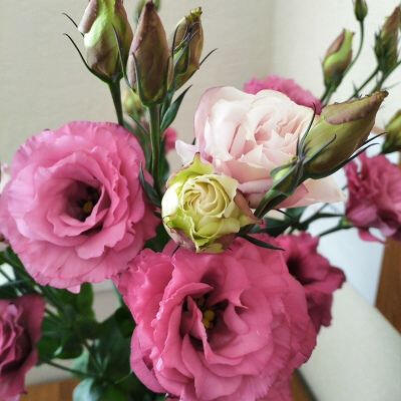 Цветки светло-розовые, колокольчатые, густомахровые, 5-6 см диаметром, образуют крупные разветвленные соцветия, долго цветут, очень хорошо стоят в врезке.