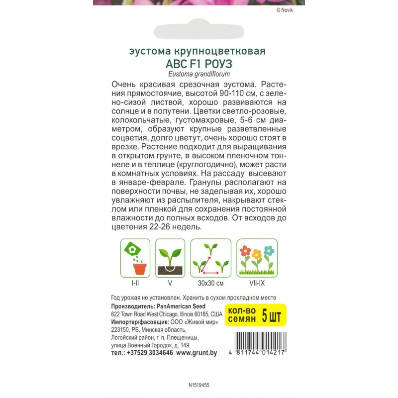 На рассаду высевают в январе - феврале. Гранулы располагают на поверхности почвы, не заделывая их, хорошо увлажняют из распылителя, накрывают стеклом или пленкой для сохранения постоянной влажности до полных всходов. От всходов до цветения 22-26 недель.