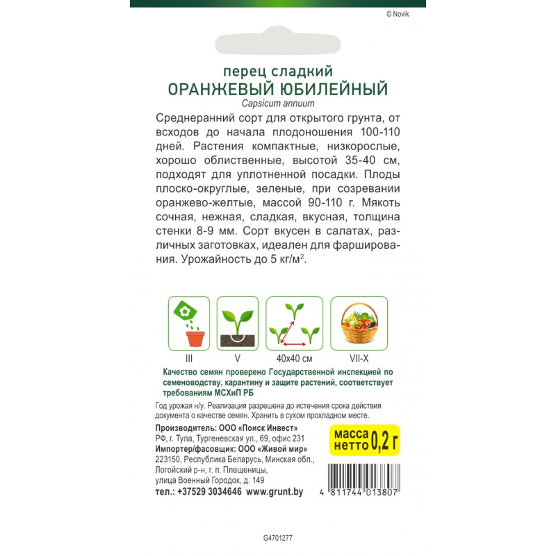 - Тип:Семена овощей