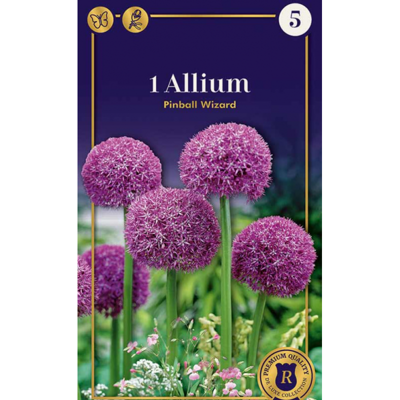 Аллиум Pinball Wizard - шикарный сорт аллиума с огромными серебристо-фиолетовыми соцветиями. Соцветия очень крупные, шаровидные, от 10 до 20 см в диаметре, имеют легкий аромат. Каждое соцветие-зонтик содержит до 100 звездообразных цветков фиолетового цвета с металлическим блеском. Прикорневые листья ремневидные, серо-зеленого цвета. Стебли ребристые.Высота растения - около 100 см. Цветет в мае-июне, продолжительность цветения - до 4х недель.Сорт подходит для создания бордюров, идеален для срезки. После высушивания соцветия-шары сохраняют свой внешний вид и могут использоваться в различных композициях.