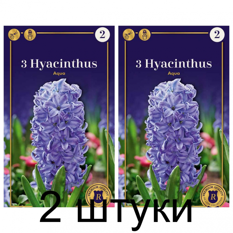 Гиацинты Aqua - один из привлекательнейших сортов гиацинта синей окраски, способный на протяжении цветения менять оттенок цветков. Нежно-голубой оттенок лепестков постепенно переходит в темно-фиолетовый. Цветки махровые, колокольчатые, многочисленные (по 35 штук). Размер отдельного цветка – около 3,5 см в диаметре и столько же или чуть больше длиной. Цветки имеют сильный сладкий аромат. Листья тонкие и узкие, длиной 20 см, имеют изумрудный окрас. Соцветие – плотная кисть, цилиндрической формы и высотой около 15-20 см. Высота растения - около 25 см. Цветение начинается, в зависимости от климатических условий, в апреле и продолжается, в среднем, около 2-3 недель.Идеально подходят для получения срезки высшего качества, и в открытом грунте, и в выгонке. Предпочитают солнечные места или полутень.