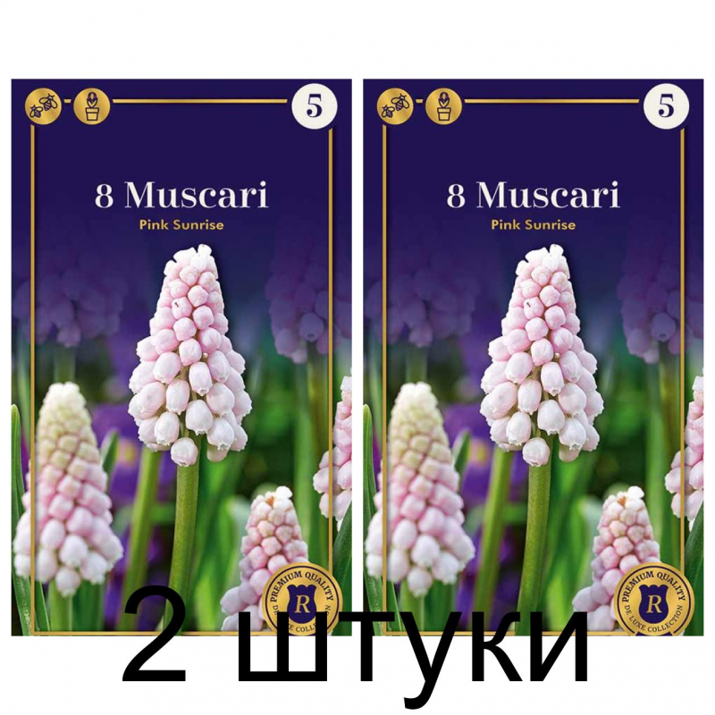 Мускари Pink Sunrise - эффектный сорт мускари светло-розовой окраски. Соцветие состоит из 40-50 маленьких цветков, напоминающих колокольчики. Размер цветков - 0,5-0,6 см. Обладают приятным ароматом. Листья узкие, темно-зеленые.Высота растения - 10-15 см. Цветет в апреле-мае, продолжительность цветения - 3-4 недели.Отличный вариант для посадки под деревьями и кустарниками, в рокариях и каменистых садах, на газонах. Прекрасно смотрятся в групповых посадках в цветниках. Пригодны для выгонки и для выращивания в контейнерах.