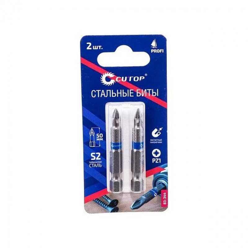 Набор стальных бит Profi (2 шт; PZ1; 50 мм) CUTOP 83-344 предназначен для шуруповертов и гайковертов. Биты произведены по технологии CUTOP, ресурс от 2000 шт. саморезов. Ребра биты производятся с помощью холодной штамповки, кончик проходит специальный процесс закалки при температурах до 870°C, что увеличивает срок службы и обеспечивает высокую точность.