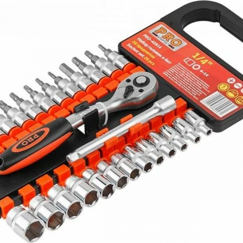 Набор головок с трещоткой STARTUL PRO-42814 – это универсальный комплект, предназначенный для выполнения широкого спектра задач по работе с крепежом. В набор входит 28 элементов, включая торцевые головки с внутренним и наружным шестигранником, а также насадки Torx, SL и PH. Размеры головок варьируются от 4 мм до 14 мм, обеспечивая универсальность применения.