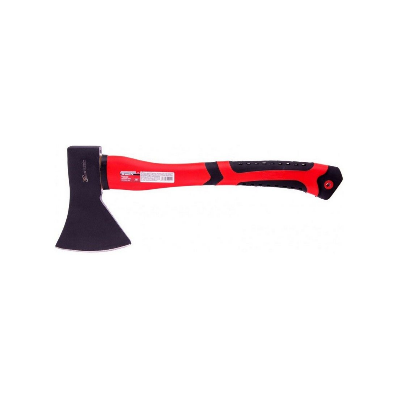 Рукоятка выполнена из фибергласса с обрезиненной поверхностью, что обеспечивает высокую механическую прочность и устойчивость к воздействию агрессивной среды. Материал эффективно поглощает вибрации, возникающие при рубке, снижая нагрузку на руки и обеспечивая комфорт в использовании. Общий вес топора с рукояткой составляет 1,458 кг, а длина инструмента — 46 см, что делает его удобным для хранения и транспортировки.