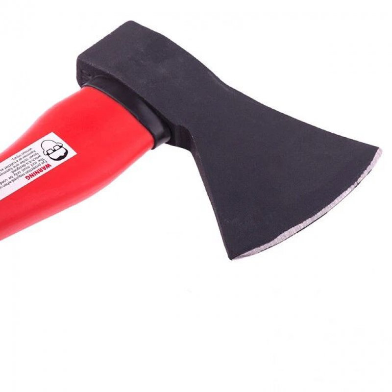 Рукоятка выполнена из фибергласса с обрезиненной поверхностью, что обеспечивает устойчивость к агрессивным средам и высокую механическую прочность. Конструкция рукоятки эффективно поглощает вибрации, возникающие при рубке, что снижает нагрузку на руки и делает работу более комфортной. Общая длина инструмента составляет 40 см, а полный вес с рукояткой — 930 г, что делает топор удобным для хранения и транспортировки.