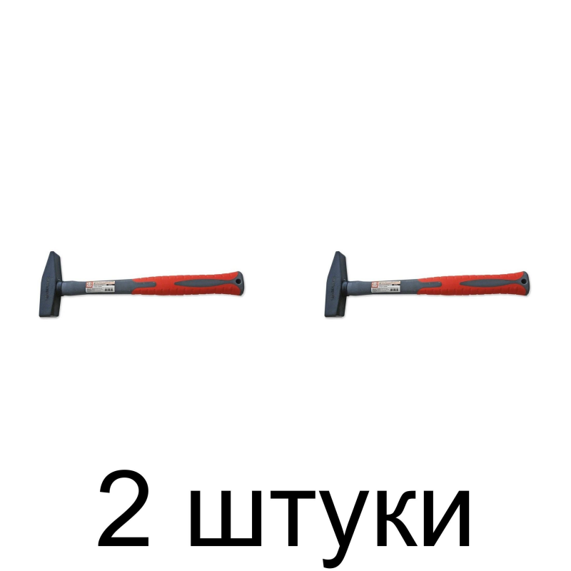Рукоятка выполнена из многокомпонентного материала с использованием фибергласа, что обеспечивает высокую прочность и устойчивость к механическим повреждениям. Прорезиненное покрытие рукоятки гарантирует надежный и комфортный хват, предотвращая выскальзывание инструмента из рук даже при длительном использовании. Общая длина молотка составляет 400 мм, что позволяет удобно работать с крупными заготовками.