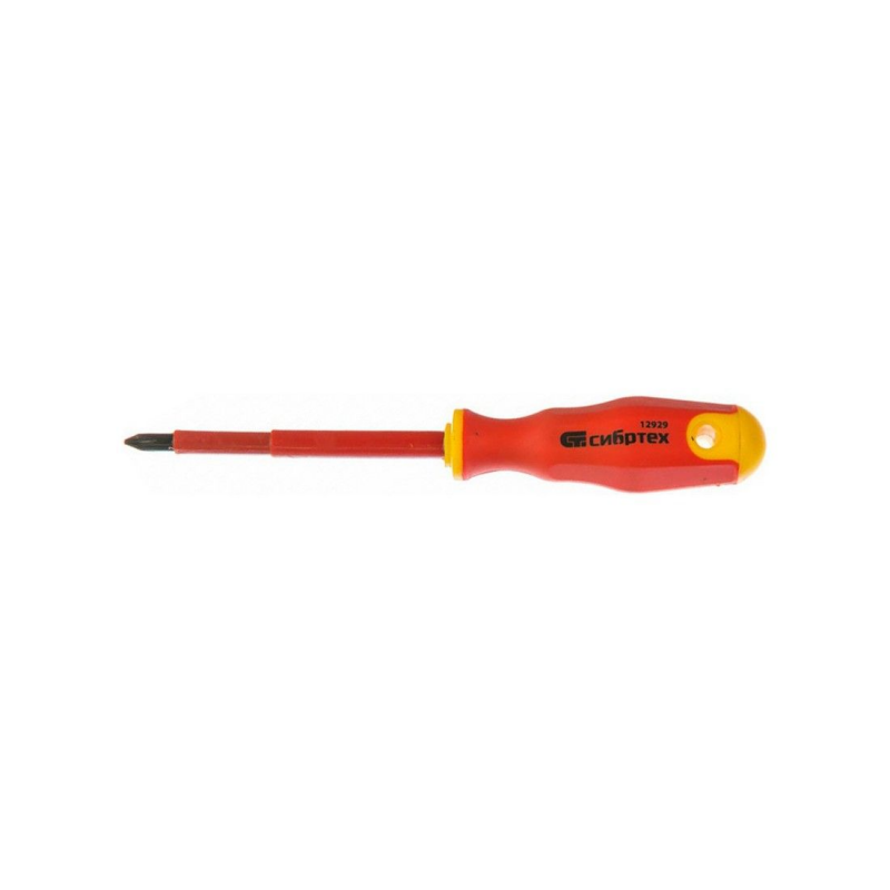 Диэлектрическая отвертка Сибртех 12929 до 1000 В, PH2 x 100 мм, из стали CrV, с двухкомпонентной рукояткой, предназначена для работы с крепежом типа Phillips «крест». Благодаря диэлектрическому покрытию она пригодится частным мастерам при замене розеток, подключении электросчетчиков и других работах. Стержня длиной 100 мм достаточно для демонтажа/монтажа крепежа в углублениях. Внимание — техника безопасности запрещает выполнять работы под напряжением! Стержень отвертки изготовлен из высококачественной хромованадиевой стали и закален до необходимой твердости. Нанесенный на рукоятку калибр шлица позволяет легко найти нужную отвертку в наборе инструментов. За счет двухкомпонентной рельефной рукоятки с противоскользящим покрытием отверткой комфортно работать. Благодаря отверстию в рукоятке возможно подвесное хранение отвертки.