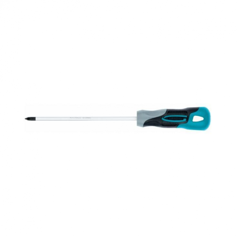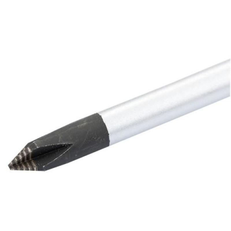 Стержень отвертки длиной 150 мм и трехкомпонентная рукоять обеспечивают удобство и надежность при работе. Рукоять выполнена из материала, который предотвращает скольжение и снижает усталость руки. Намагниченный наконечник надежно фиксирует крепеж, упрощая работу, а реверсивный механизм добавляет удобства при необходимости смены направления.