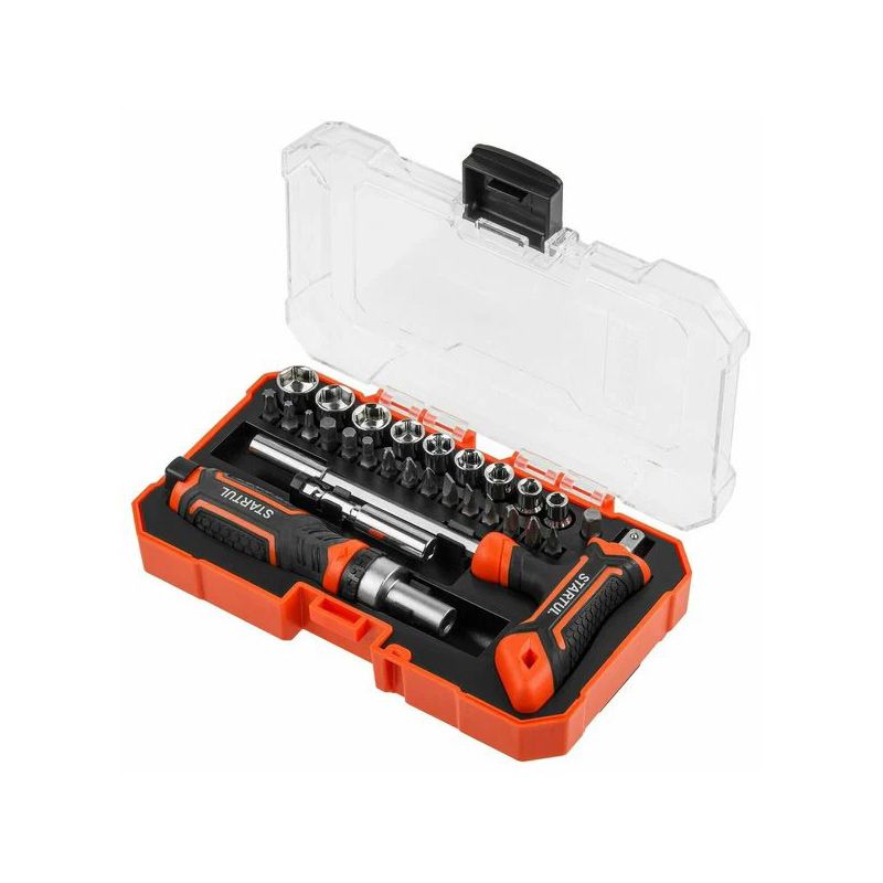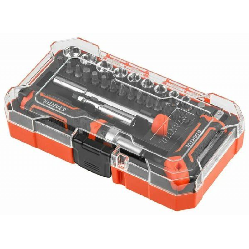 Отвертка реверсивная с битами STARTUL ST3095-28 — это универсальный и многофункциональный инструмент, идеальный для выполнения различных задач. В комплекте 28 бит с различными типами шлицев, что позволяет работать с разными крепежами. Изготовлена из высококачественного материала CrV, что гарантирует долговечность и износостойкость.
