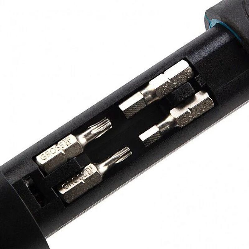 Отвертка реверсивная с битами GROSS 11601 11пр. — высококачественный набор для профессионалов, включающий отвертку с реверсивным механизмом и 11 бит различных типов, предназначенных для работы с различными крепежами. В комплект входят биты с шлицами PH, SL, T и Hex (РН1, РН2, РН3, SL4, SL6, T15, T20, H4, H5), что делает этот инструмент универсальным для большинства задач. Стержень отвертки выполнен из прочной стали S2, что гарантирует её долговечность и устойчивость к износу. Биты легко заменяются, а магнитный наконечник надежно фиксирует их на месте, обеспечивая удобство в работе. Рукоять с эргономичной формой и пластиковой поверхностью предотвращает скольжение и гарантирует комфорт даже при длительных работах. Основные характеристики: - Тип шлица: SL, PH, T, Hex - Размер шлица: РН1, РН2, РН3, SL4, SL6, T15, T20, H4, H5 - Материал стержня: сталь S2 - Длина стержня: 25 мм - Общая длина: 190 мм - Материал рукояти: пластик - Намагниченный наконечник для удобства работы - Реверсивный механизм для работы в обе стороны - В комплекте 11 бит для различных типов шлицев - Вес: 344 г Отвертка GROSS 11601 11пр. — это универсальный и удобный инструмент, который должен быть в арсенале каждого профессионала.