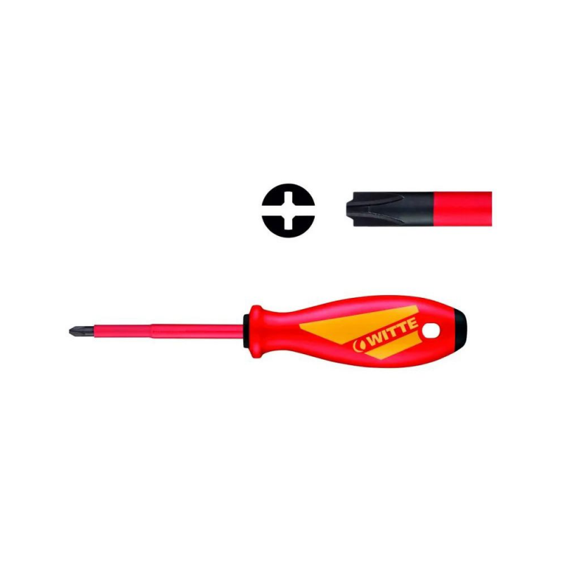 Отвертка диэлектрическая WITTE Maxx VDE MPH1х80мм — профессиональный инструмент с шлицем MPH1, предназначенный для работы с электрическими компонентами, обеспечивающий высокий уровень безопасности. Изготовлена в Германии с использованием стального стержня и двухкомпонентной рукоятки для удобства и надежности при эксплуатации.