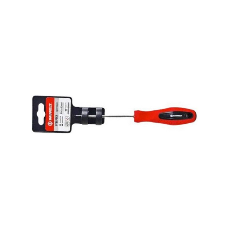 Отвертка BAUWELT PH0x80 мм — качественный инструмент для работы с крепежами типа PH (крестообразный шлиц), идеально подходящий для мелких и точных задач в домашних и профессиональных условиях. Стержень отвертки выполнен из прочной стали, что обеспечивает долговечность и стойкость к износу. Размер шлица PH0 идеально подходит для работы с мелкими крепежами, часто используемыми в электронике, точной технике и других областях, требующих аккуратности. Длина стержня 80 мм позволяет работать в ограниченных пространствах, обеспечивая удобство и точность. Рукоять из пластика имеет прямую форму, что гарантирует удобный захват и точный контроль над инструментом, предотвращая скольжение при работе. Компактный размер и лёгкий вес делают отвертку удобной для переноски и хранения. Отвертка BAUWELT PH0x80 мм производится в Китае под брендом BAUWELT, что подтверждает её качество и надёжность. С весом 42.1 г, она легка и удобна для повседневного использования. Основные характеристики: - Тип шлица: PH - Размер шлица: PH0 - Материал стержня: сталь - Длина стержня: 80 мм - Материал рукояти: пластик - Вес: 42.1 г Отвертка BAUWELT PH0x80 мм — оптимальный выбор для точных и деликатных работ с крепежами малого размера.